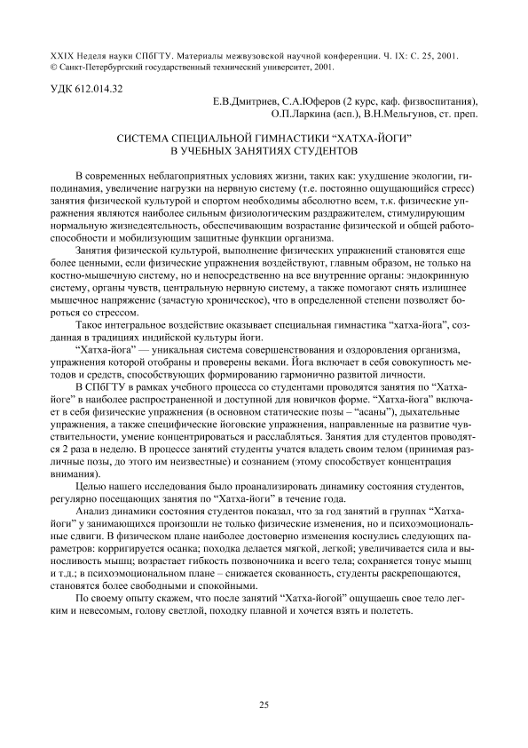 | Тематика | студенты ; физическая культура ; йога ; учебные занятия |