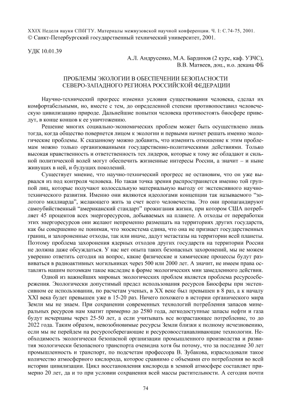 | Организация | Санкт-Петербургский государственный технический университет. Межвузовская научная конференция, Неделя науки (29; 2000; Санкт-Петербург) ; Совет СПбГТУ по научно-исследовательской работе студентов |
