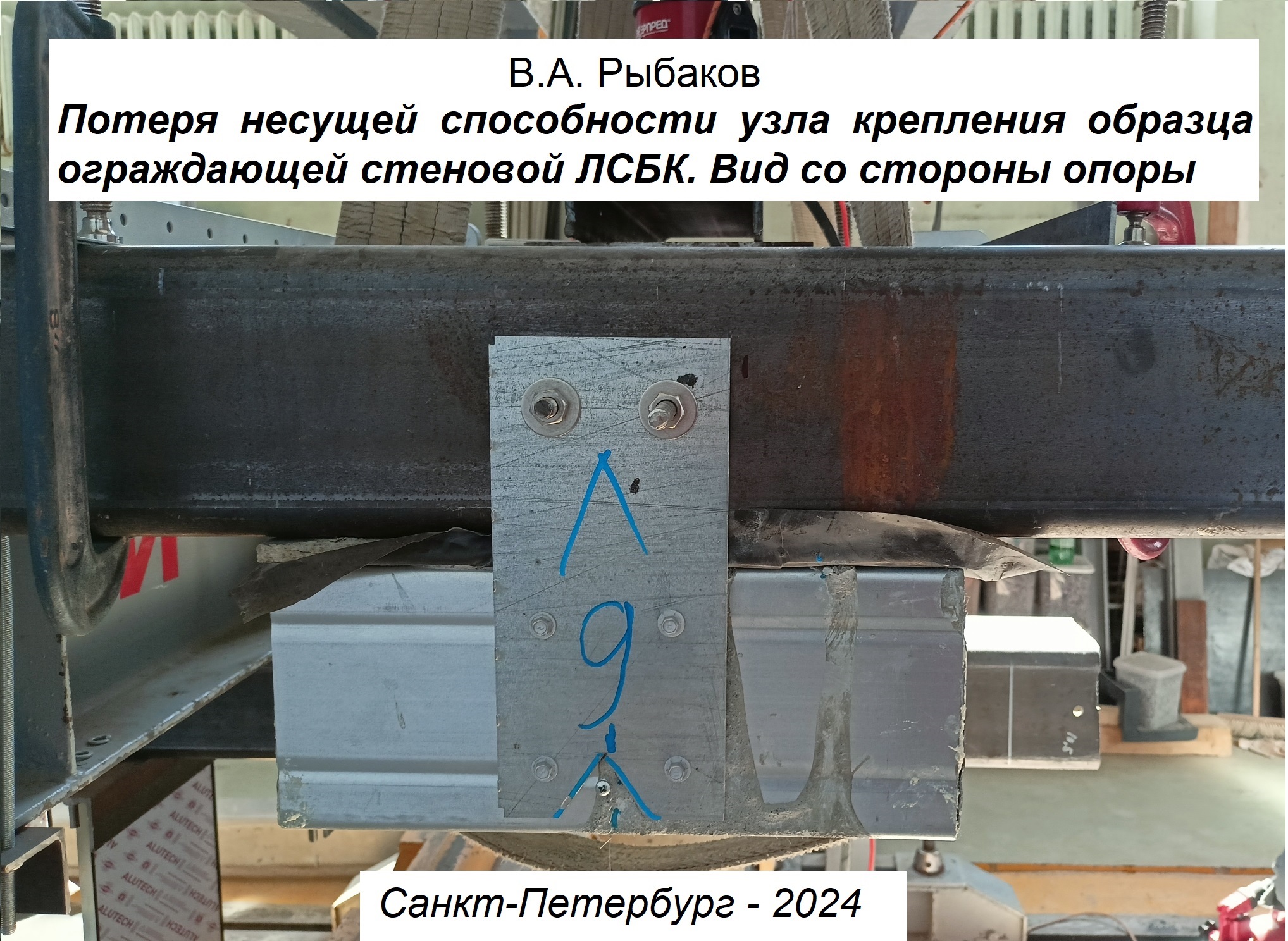 | Title | Потеря несущей способности узла крепления обреза ограждающей стеновой ЛСБК. Вид со стороны опоры |