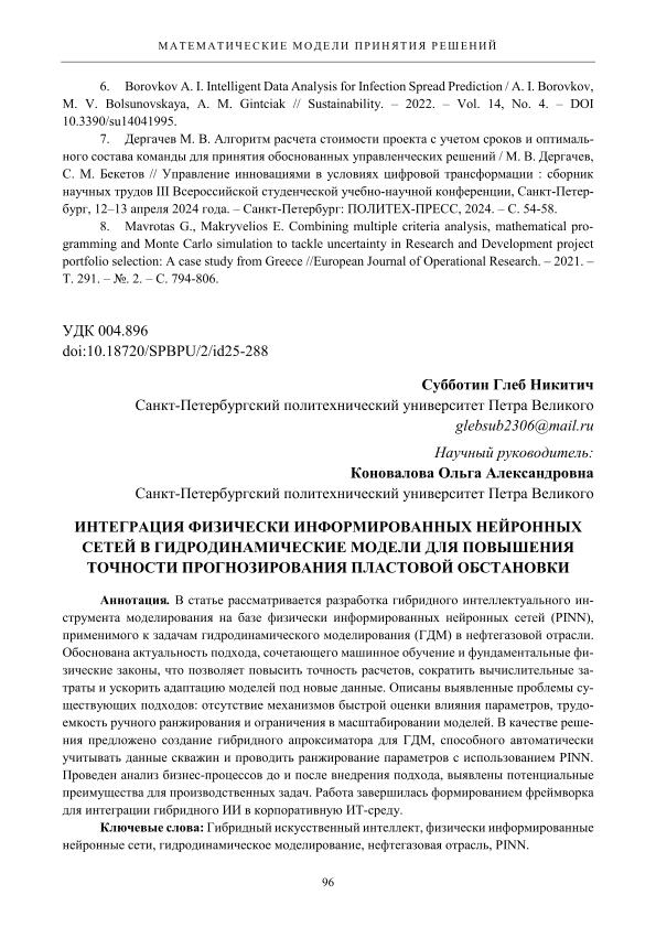 Название | Интеграция физически информированных нейронных сетей в гидродинамические модели для повышения точности прогнозирования пластовой обстановки // Управление инновациями в условиях цифровой трансформации: сборник научных трудов Всероссийской студенческой учебно-научной конференции, 11–12 апреля 2025 года |
