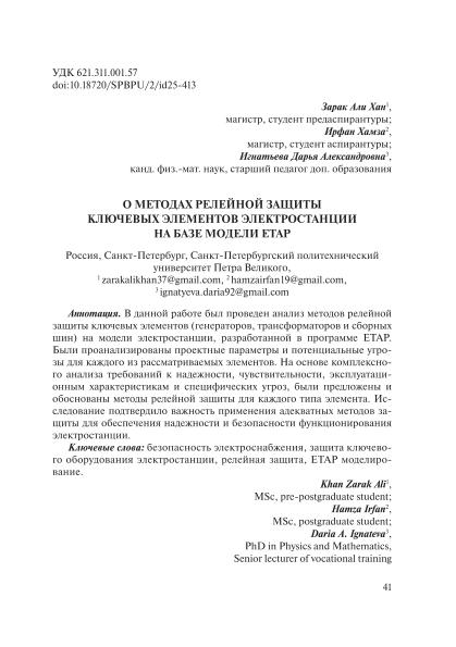 | Title | О методах релейной защиты ключевых элементов электростанции на базе модели ETAP // Предмагистерская подготовка иностранных граждан: сборник статей VII межвузовской научно-практической конференции с международным участием, 21–23 июня 2025 года |