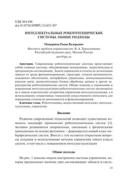 | Title | Интеллектуальные робототехнические системы. Общие подходы // Промышленный искусственный интеллект (ПИИ'2025): Всероссийская научно-практическая конференция с международным участием 3–4 июля 2025 года: cборник научных трудов |