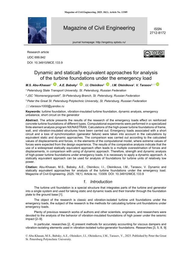 | Title | Dynamic and statically equivalent approaches for analysis of the turbine foundations under the emergency load // Magazine of Civil Engineering. – 2025. – Т. 18, № 1. — С. 13309 |