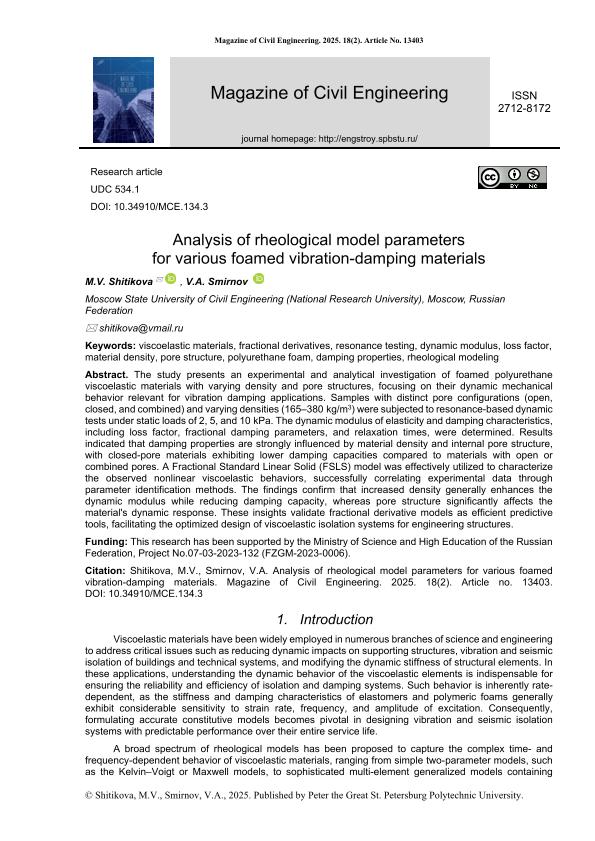 Название Analysis of rheological model parameters for various foamed vibration-damping materials // Magazine of Civil Engineering. – 2025. – Т. 18, № 2. — С. 13403