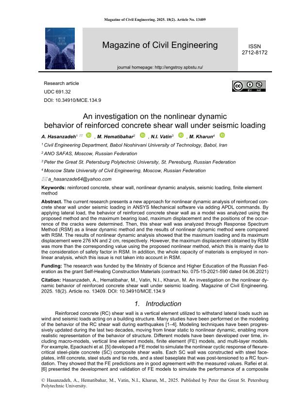 | Название | An investigation on the nonlinear dynamic behavior of reinforced concrete shear wall under seismic loading // Magazine of Civil Engineering. – 2025. – Т. 18, № 2. — С. 13409 |