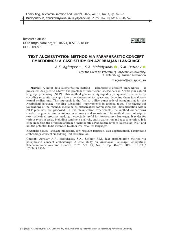Представлен новый метод аугментации данных - парафразные концептуальные векторные представления, - предназначенный для решения проблемы нехватки размеченных данных в азербайджанской обработке естественного языка. Метод генерирует качественные парафразные предложения, кодируя семантические концепты в непрерывное векторное пространство и декодируя их в разнообразные текстовые формы. Это первый подход, использующий концептуальное парафразирование для азербайджанского языка, обеспечивая заметные улучшения в прикладных задачах. Предложены теоретические основы метода, его математическая модель и интеграция в конвейеры обработки данных. В экспериментах по классификации текста метод превосходит стандартные техники аугментации по точности и устойчивости. Метод не требует внешних лексических ресурсов, что делает его особенно полезным для малоресурсных языков. Метод масштабируется для различных типов задач, включая анализ тональности, извлечение сущностей и генерацию текста. Делается вывод, что предложенный подход существенно продвигает уровень обработки естественного азербайджанского языка и имеет потенциал расширения на другие малоресурсные языки.