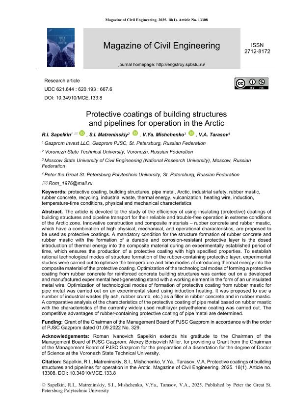 | Title | Protective coatings of building structures and pipelines for operation in the Arctic // Magazine of Civil Engineering. – 2025. – Т. 18, № 1. — С. 13308 |